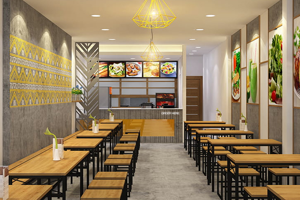Diện tích không gian của nhà hàng hiện đang kinh doanh cơm văn phòng là 60m2